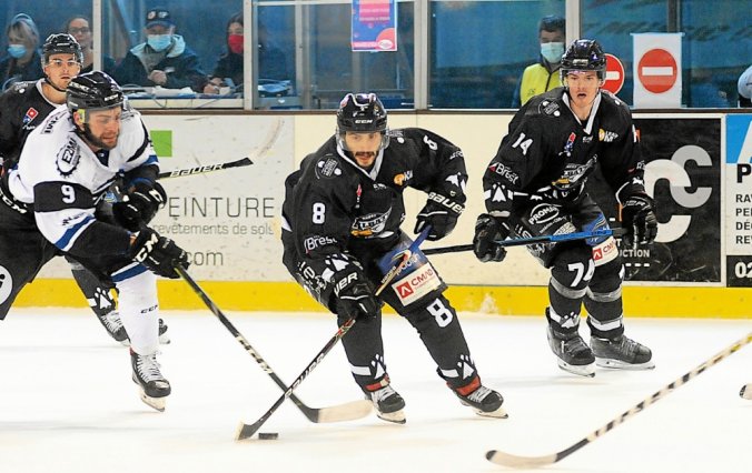 Justin Bernier (au centre) a permis aux Albatros d’enlever un succès intéressant face aux Nantais. (Photo Yvan Breton)